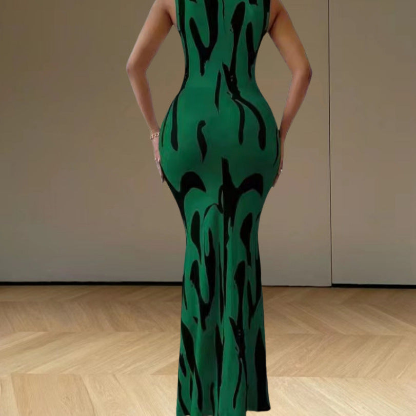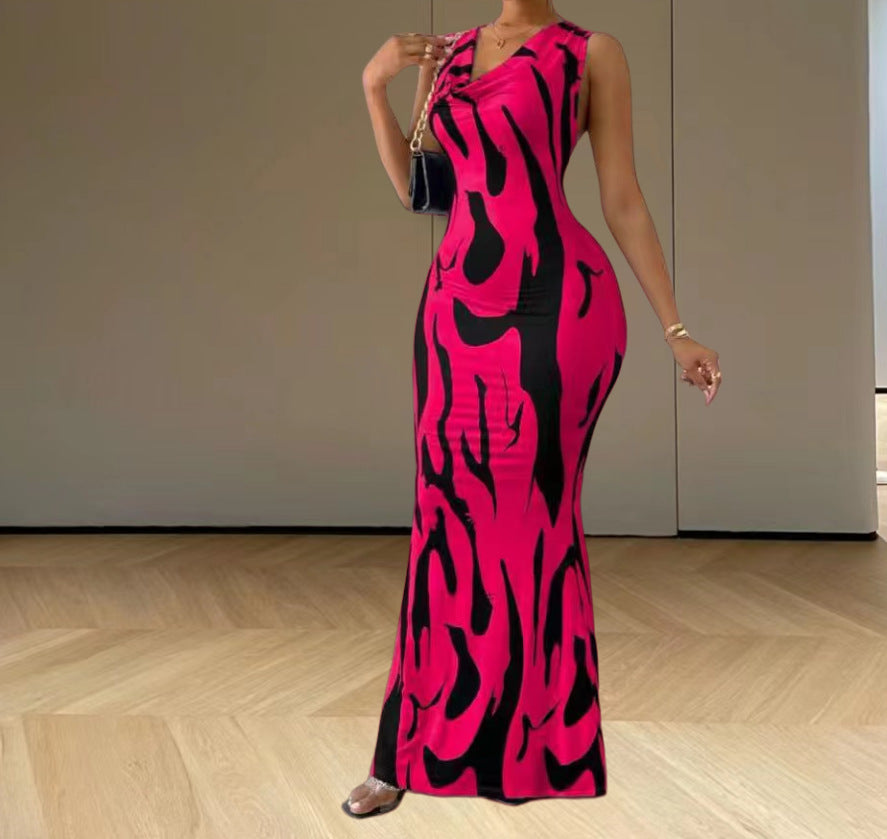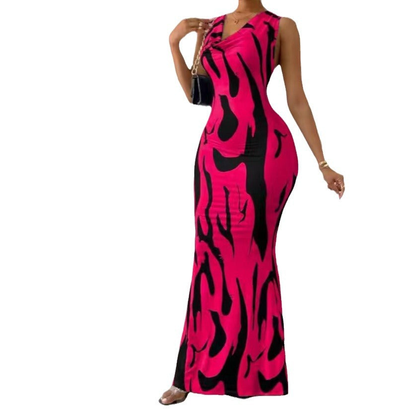 European And American V-neck Halter Hot Girl Women's Pullover Sheath Dress