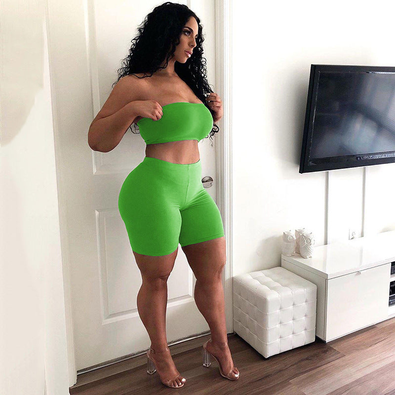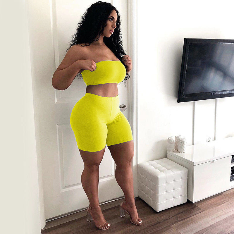 High Elastic Tight Elastic Small Tube Top Shorts Two-piece Set