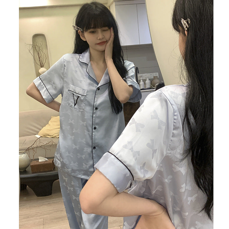 Ladies Bow Jacquard Embroidery Sweet Ice Silk Pajamas