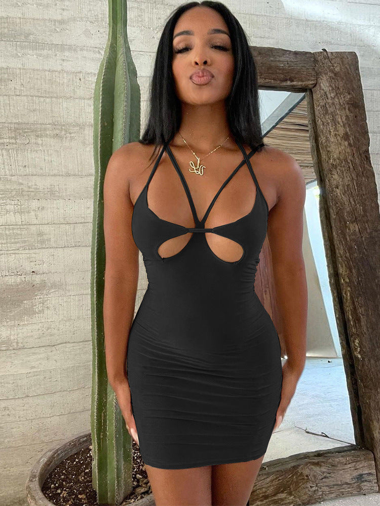 Slim Fit Waist-tight Hot Girl Hollow Dress