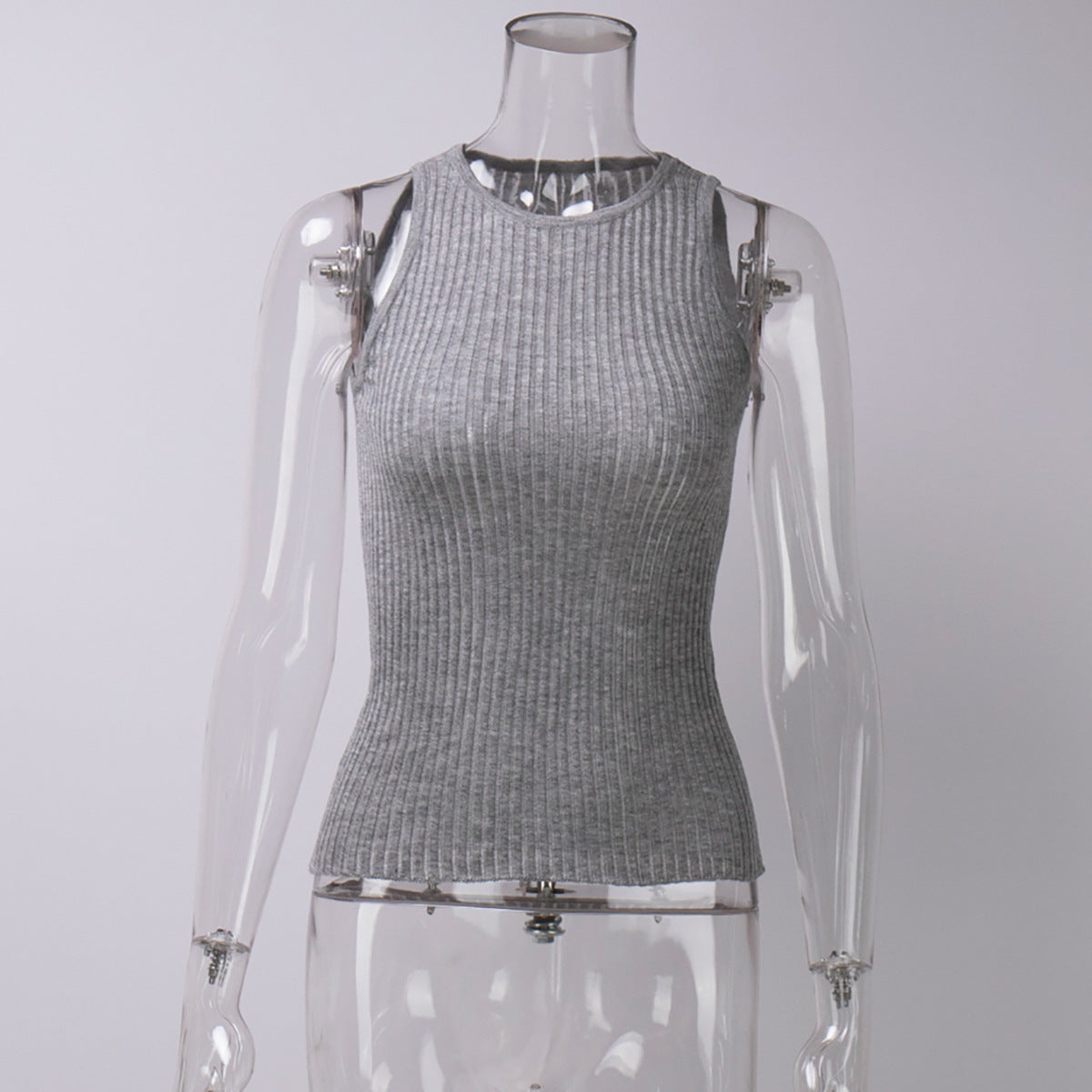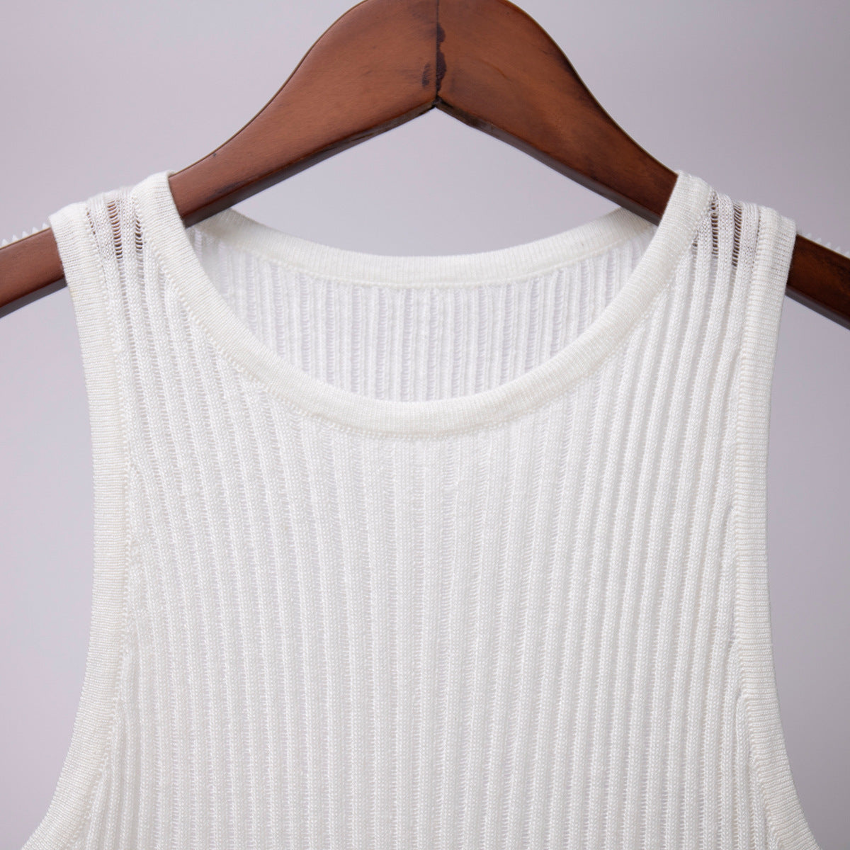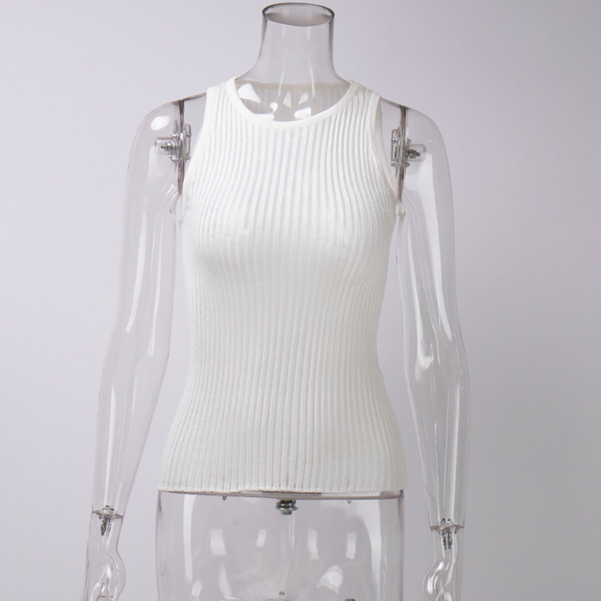 Women's Fashion Solid Color Rib Fabric Hollow Vest Slim Sleeveless Knitted Top